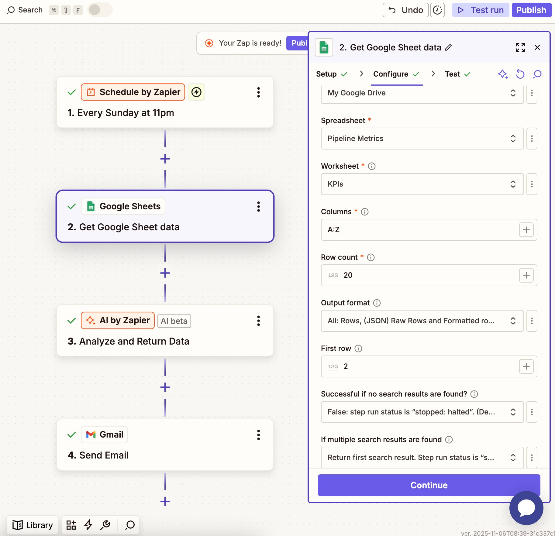 Add new step: Google Sheets